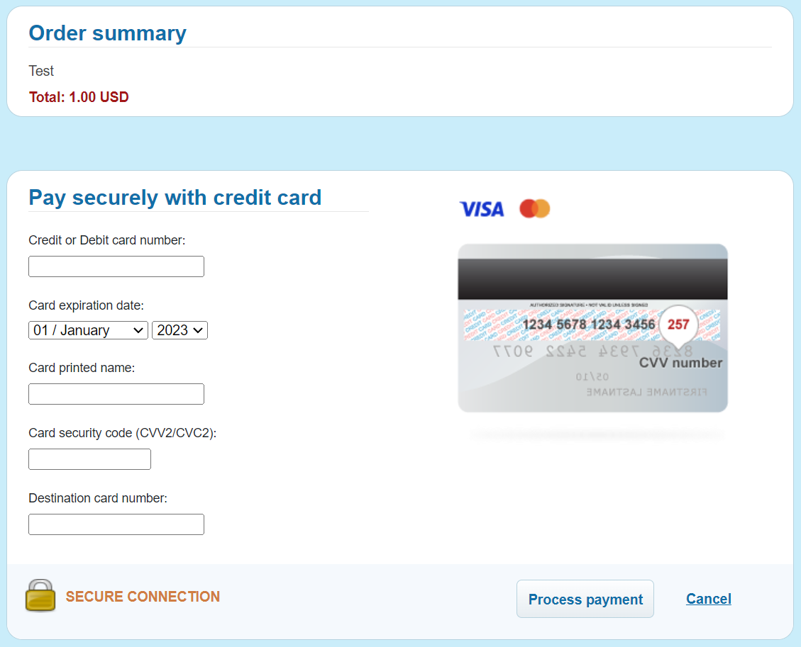 Payers fill out a payment form provided by Connection Party or Payment Gateway side and sends data.