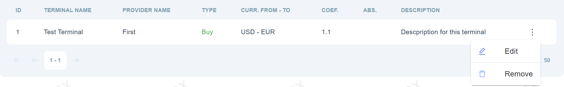 After creating new Terminal it will be possible to see it in “Terminals” section.