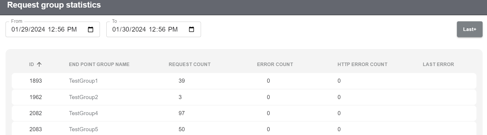 Managers are able to monitor requests to Endpoint Groups by getting this statistical table: