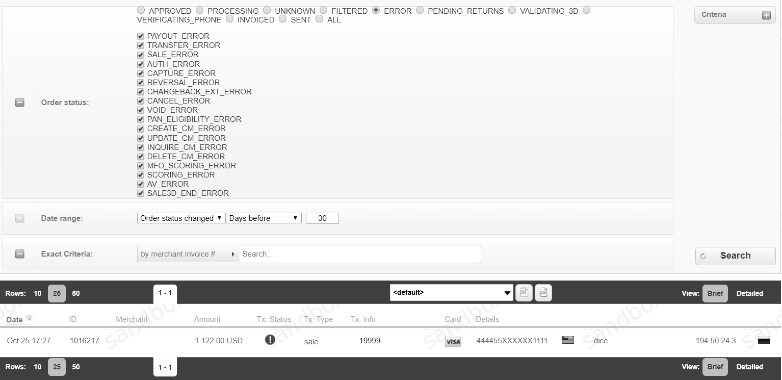 EPSHB Payment Gateway also displays statistics per card payment system, per currency, as well as per payment method.