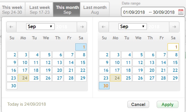 Установите желаемый диапазон дат во всплывающем календаре: