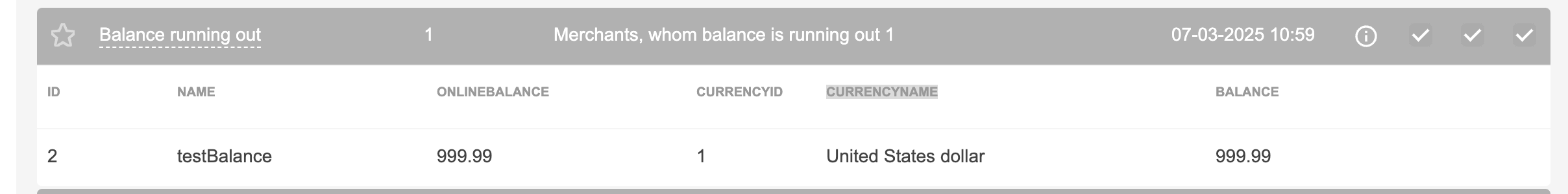 Уведомления могут быть созданы для случаев, когда транзакции были отфильтрованы по одному из следующих фильтров: